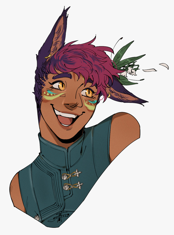 A’maya prides herself on being a spark to flames—an initiator, a go-getter, though some might say she’s an enabler. In pursuing passions and thrills alike, she easily casts all manner of self-preservation aside, always readily eager to move on to the next exciting thing. With her in your company, dull moments are few and far between, for better or for worse. Don’t let her usual levels of energy and volume fool you, however; a lax time is just as welcome as a rowdy one.Her values are placed in respect, sincerity, and good conversation. A keen eye may take note of the proverbial arm’s length A’maya maintains at all times out of commitment to her independence—a fierce shield dedicated to her innermost heart, which even she doesn’t know very well.Although she usually takes to wandering and chinwagging in her spare time, she’s a leathersmith by trade, who returns to her clan’s roaming settlement in Othard now and again to tend to their herd of sheep and take part in rites. You’ll most often find her roaming the eastern half of the world to chase whatever fancy she’s after while staying close enough to home. On any given day, she’ll happily trade some of her leatherwork or mend your boots for a good meal.Highly food motivated and plays well with others.